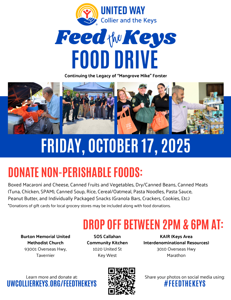 Join United Way of Collier and the Keys in honoring Mike Forster by becoming a Collection Site Partner for the Feed the Keys Food Drive!